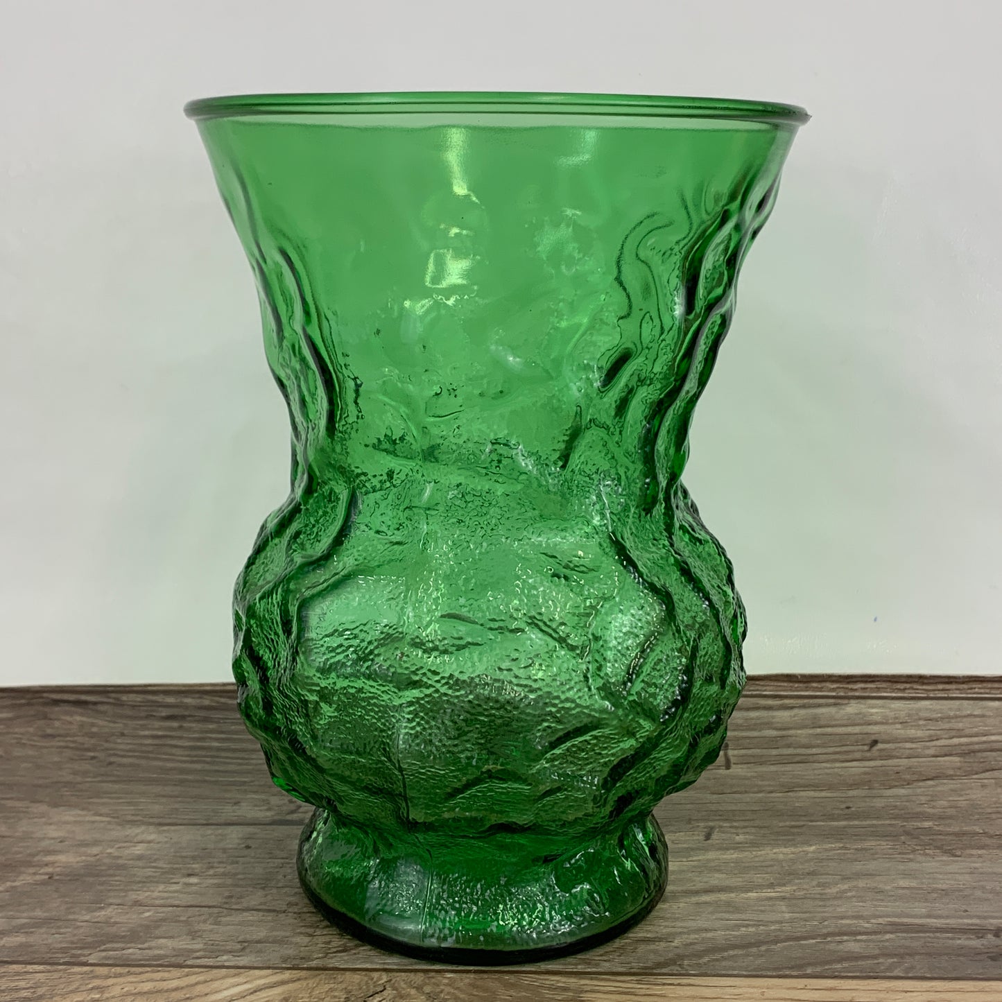 The Emerald Green Textured Pineapple Vase is a stunning addition to any home decor collection! This vintage vase is made of vibrant green glass, which features a unique textured pattern and a wide mouth perfect for displaying large bouquets. The base is marked EO Brody glass. Please note that there is a minor manufacturing flaw on the inner rim, adding to the character of this one-of-a-kind piece.