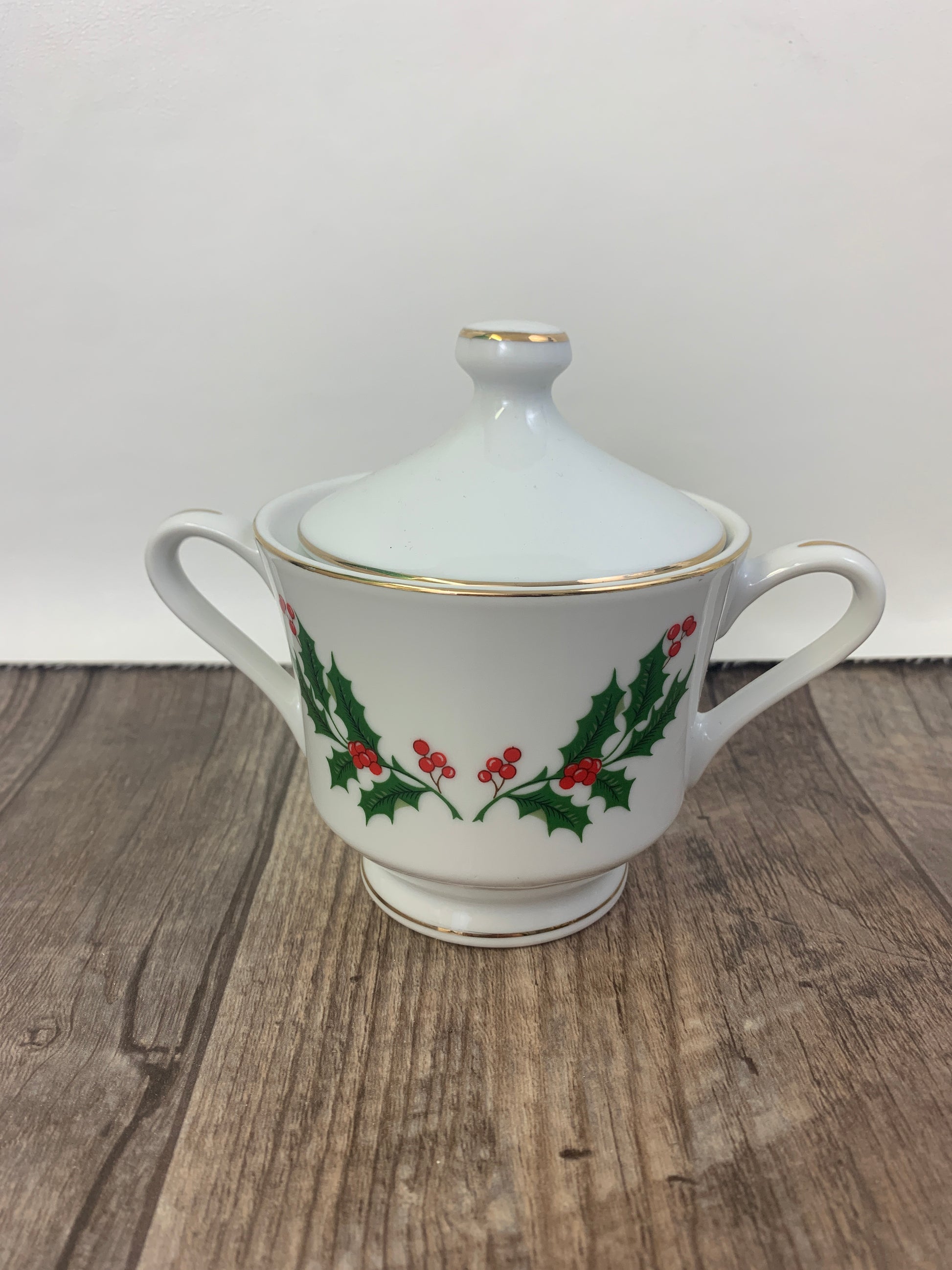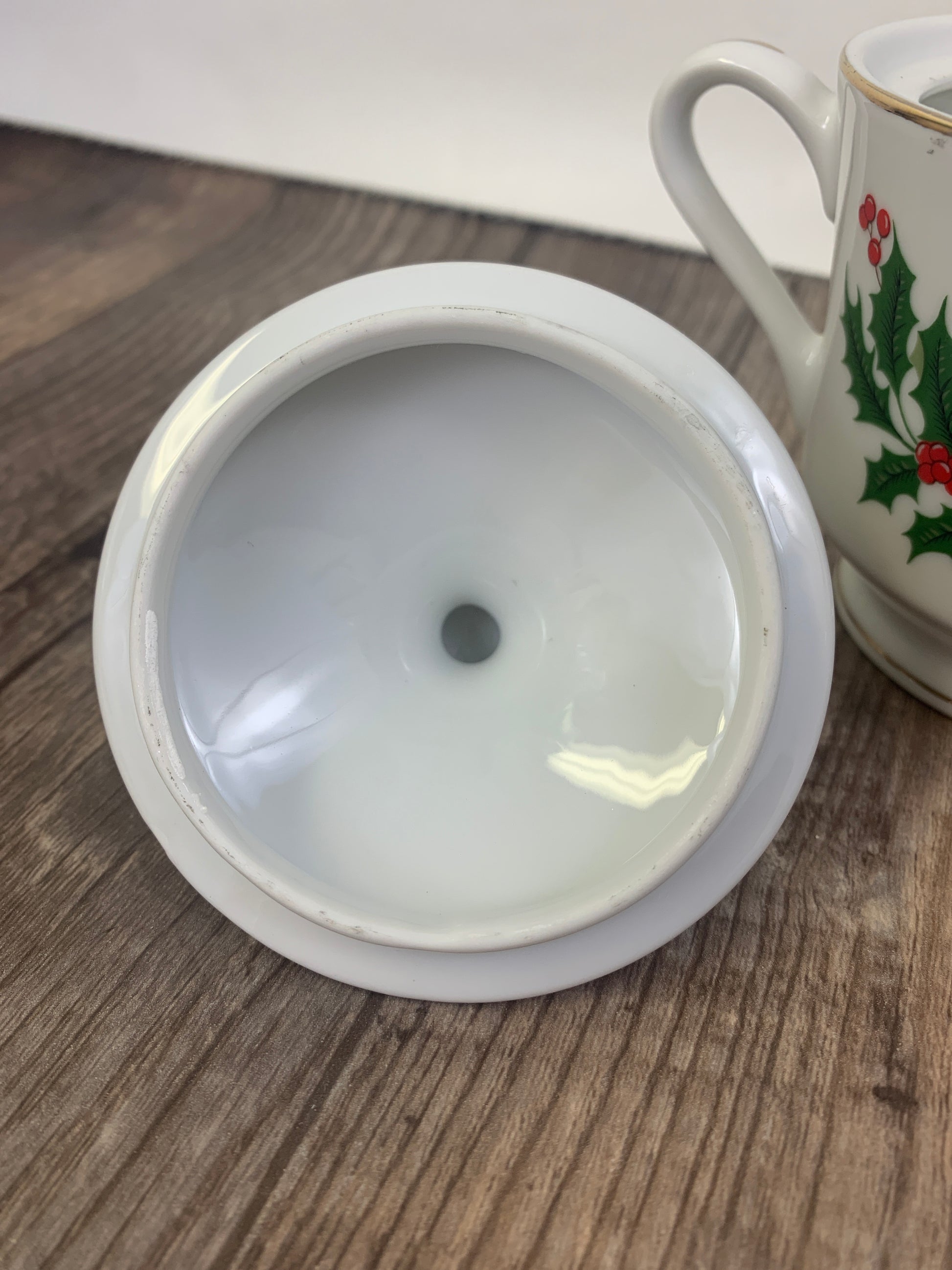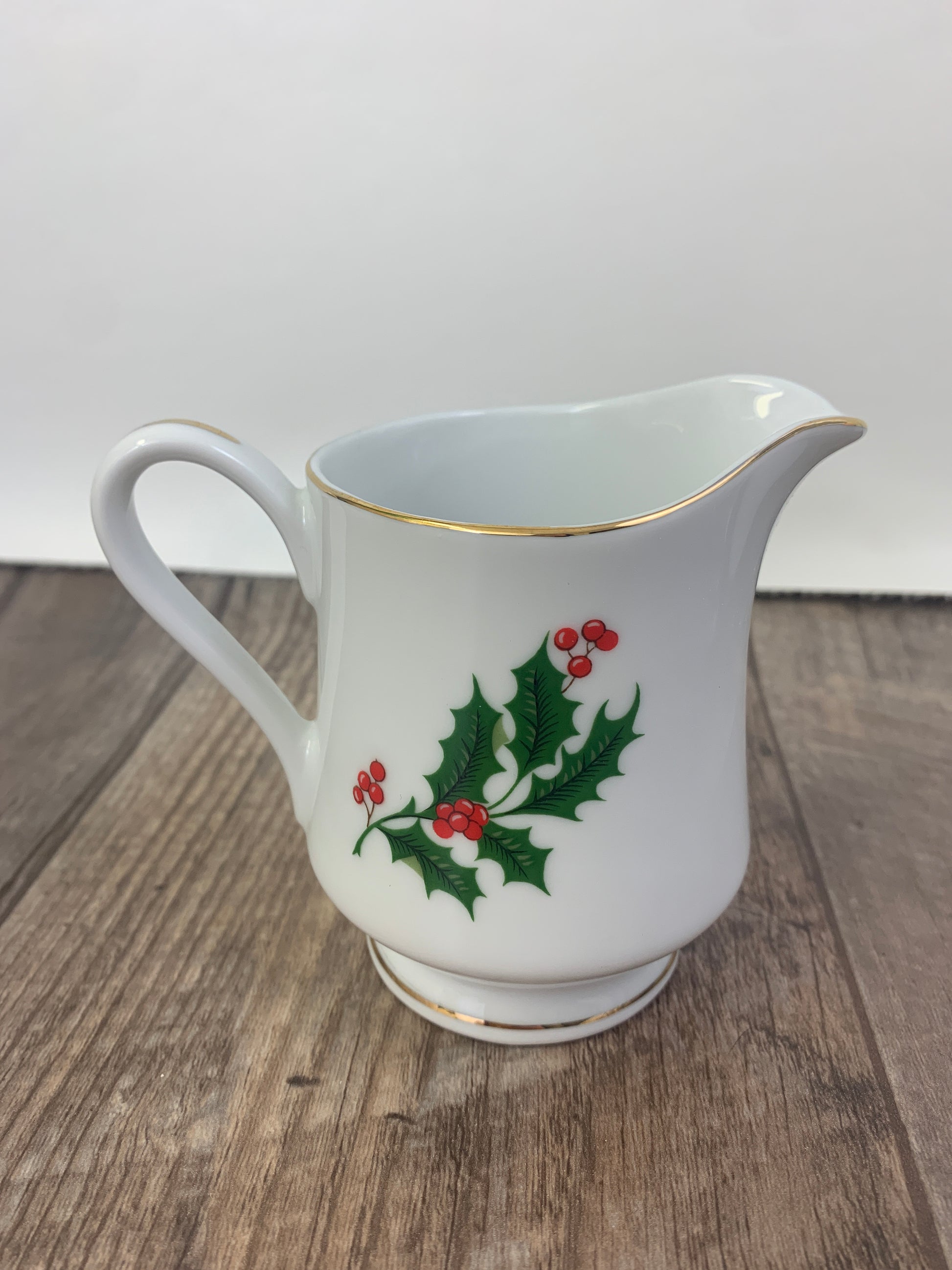 Holly Pattern Cream and Sugar Made in Japan Fine Bone China Cream and Sugar set Vintage Christmas Serving Set