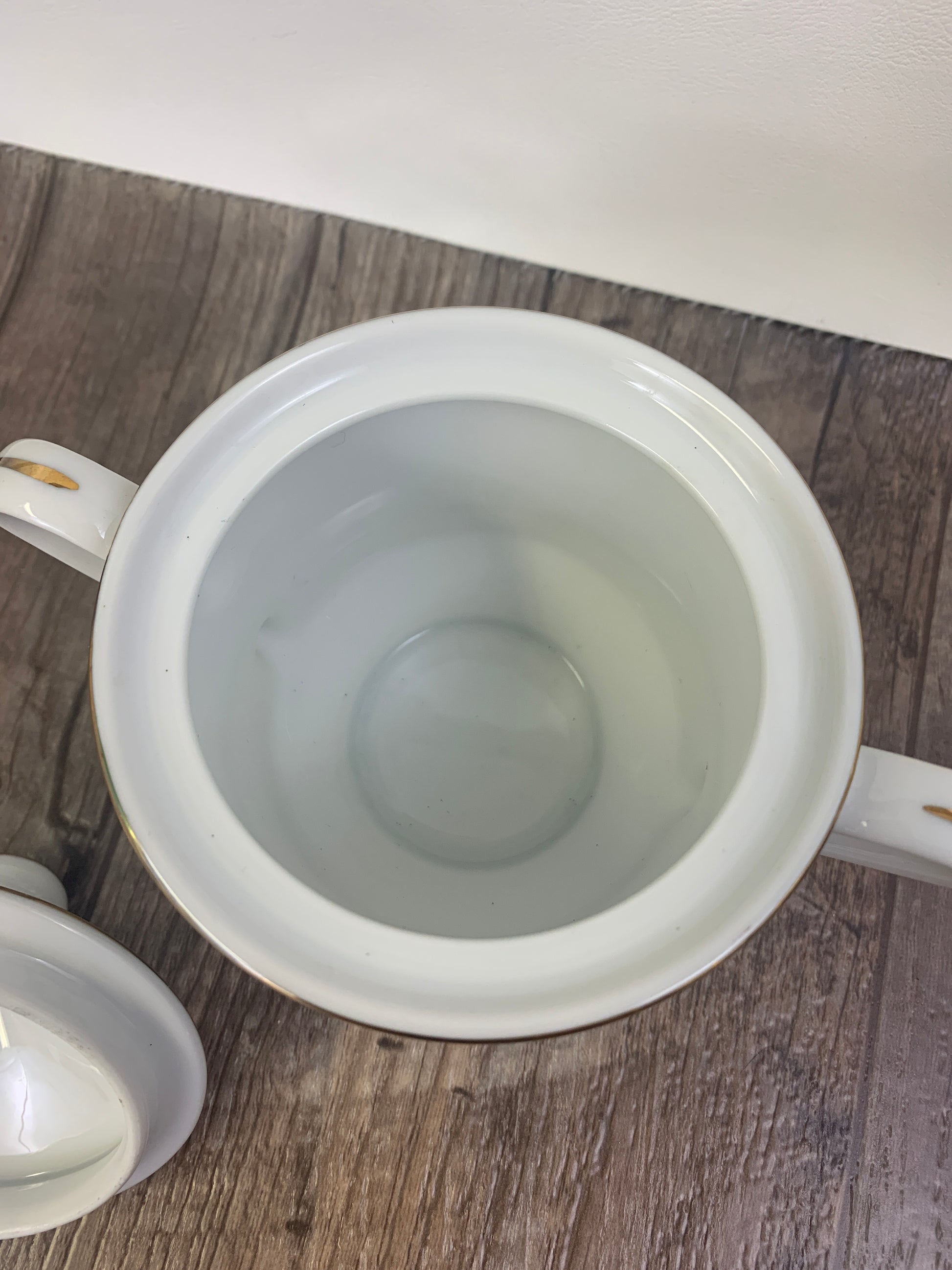 Delight your guests with this exquisite vintage Christmas cream and sugar set finely crafted from Japan's finest bone china. The classic design shows off charming sprigs of holly, perfect for adding a festive touch to your holiday dining table. Make this holiday season one to remember with this timelessly beautiful set!
